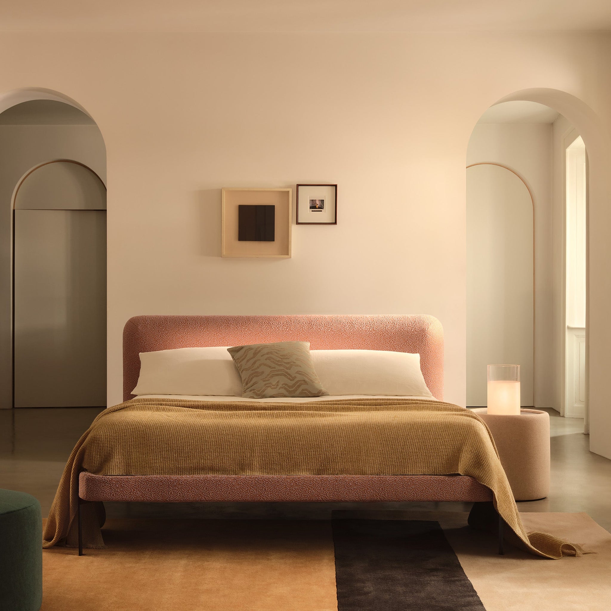 Joy è un letto imbottito dal carattere distintivo e raffinato, che unisce forma e funzione in un equilibrio armonioso. La sua testiera, dalle linee sinuose e quasi scultoree, assume un ruolo decorativo, diventando l’elemento iconico del progetto. A completare la composizione, il giroletto avvolgente, accentua la sensazione di comfort e protezione, conferendo al letto una presenza scenica importante ma mai eccessiva.