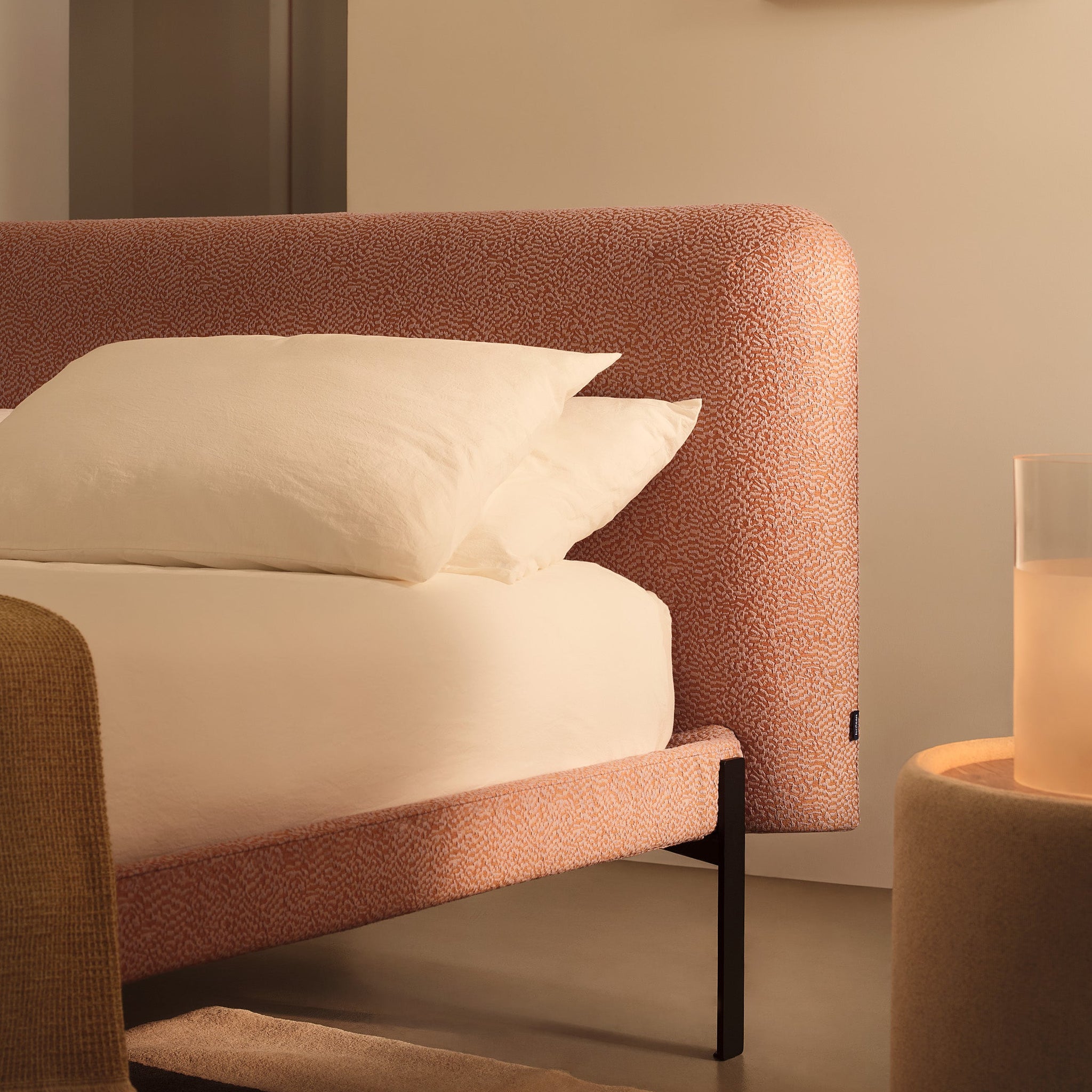Il design di Joy è esaltato dal contrasto tra volumi pieni e dettagli leggeri: le gambe sottili e geometriche, in metallo verniciato o finiture personalizzabili, creano un piacevole gioco di proporzioni, alleggerendo visivamente la struttura e donando al letto un aspetto sospeso, elegante e contemporaneo.