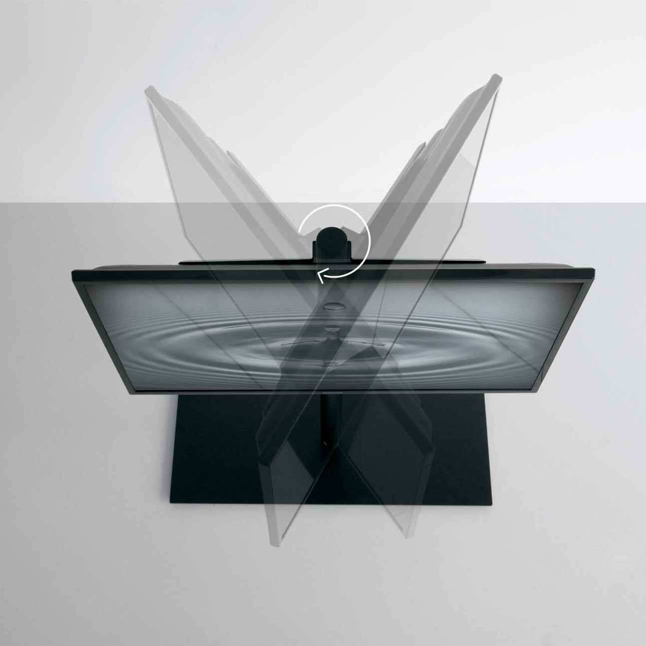 Spin360 è un supporto TV disegnato e progettato per una perfetta integrazione con i monitor dal design più sofisticato. Nascondere i cavi completamente al suo interno e orientare la colonna a 360 gradi, garantisce massima funzionalità e purezza di disegno. Spin 360 è disponibile nella versione con base in acciaio spessore 6mm, con contenitore per unità multimediali aperto o chiuso, in due altezze distinte H=100 / 120 cm.