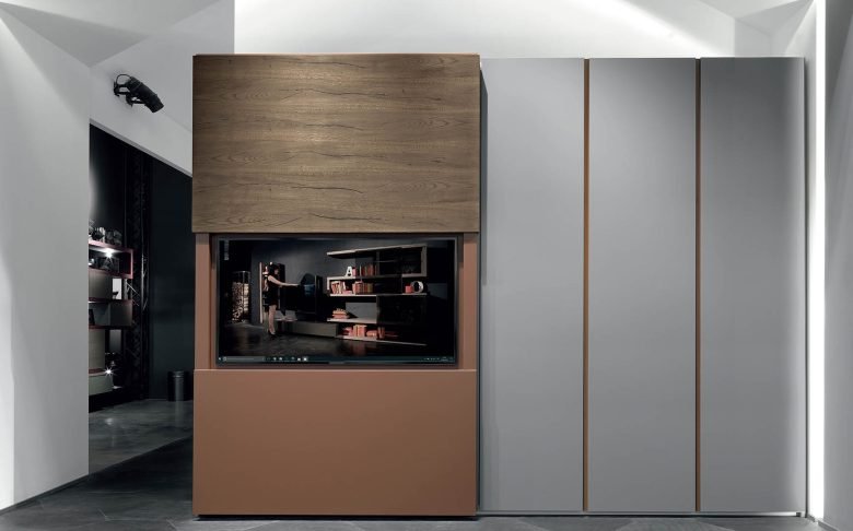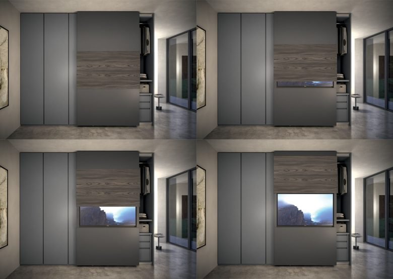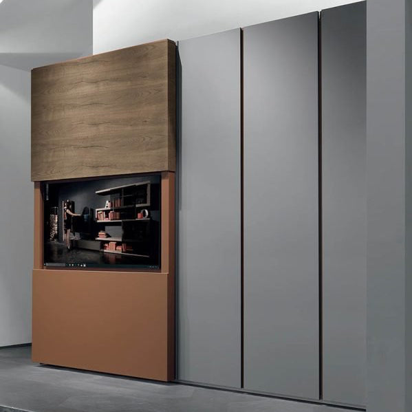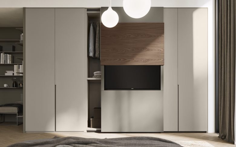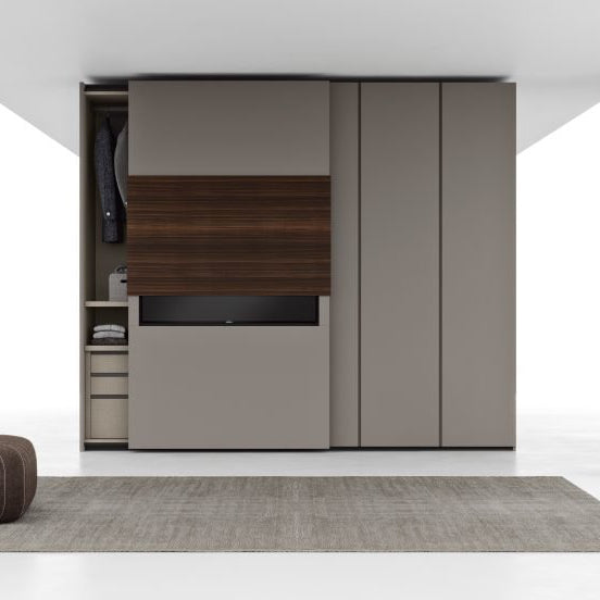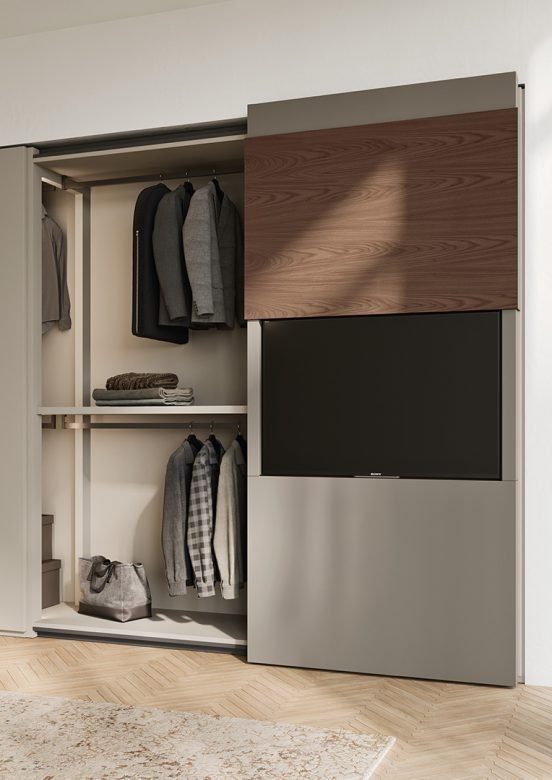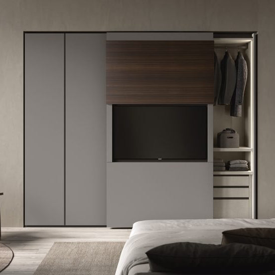 L’armadio con anta scorrevole porta TV Sipario di Fimar Mobili offre una soluzione elegante e funzionale per la tua zona notte. Il sistema brevettato consente di nascondere il televisore con un meccanismo scorrevole verticale, mantenendo un design uniforme e moderno. Ideale per ottimizzare gli spazi e aggiungere un tocco di eleganza. Scopri le opzioni di personalizzazione disponibili per adattarlo al tuo stile.